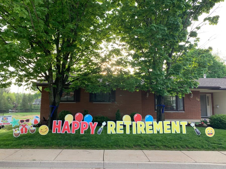 This Durham Yard Greeting rental sign is great for anyone celebrating a Retirement. We can custom to say most small phrases and say anything you wish!