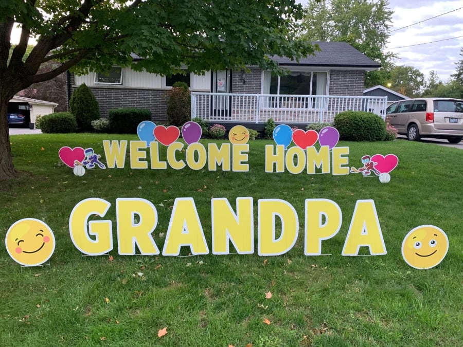*Smiley faces & additional items may vary from display above If you want a different saying on the lawn, just let us know. We can customize it how you want!